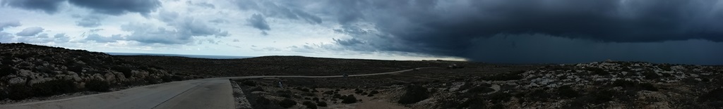Secondo giorno: come già detto la mattina del secondo giorno, una volta uscita dall’hotel e incamminata verso la spiaggia dei Conigli, il cielo ha iniziato a tingersi di grigio scuro… dato che le nubi non invogliavano per niente ad andare al mare e considerando che si scarpina un po’ per arrivare alla meta che avevo in testa, ho optato per fare una passeggiata in auto lungo tutta la costa nord. Fortunatamente l’idea è stata felice perché sono arrivata fino a capo Ponente, l’estremità ovest dell’isola, e dalle scogliere si godeva di un panorama tempestoso e inquietante, ma veramente spettacolare. I nuvoloni arrivavano sempre più vicini, si caricavano e si scurivano sempre di più mentre in lontananza si vedevano gli scrosci di pioggia sul mare. Impressionante e selvaggiamente bello 😍.