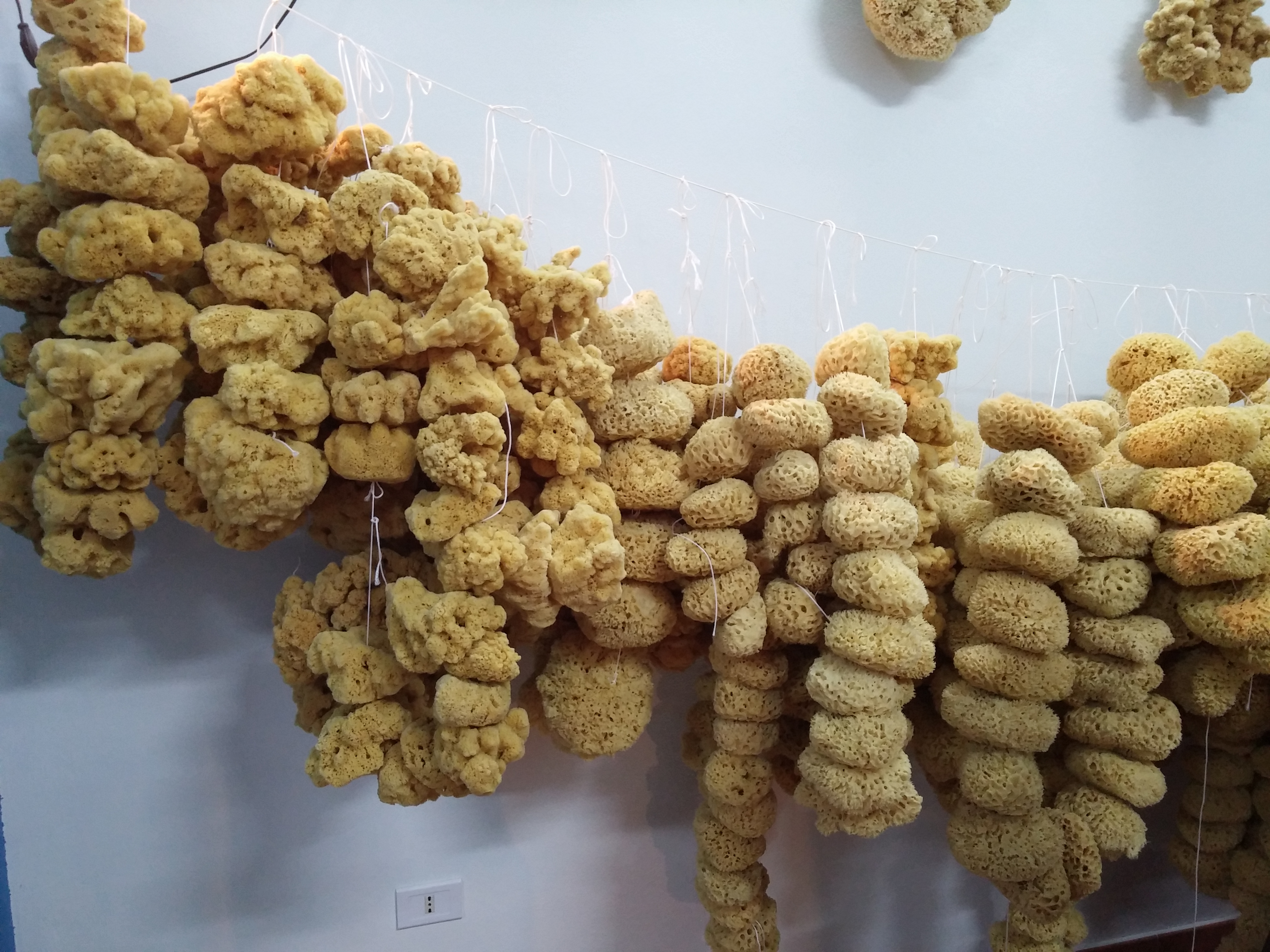 Ricordino da riportare: Lampedusa non ha grandi tipicità locali, c’è un pochino di ossidiana, un po’ di artigianato locale e molti negozietti di prodotti vari… tra tutti però ce n’è uno che spicca a mio giudizio: il negozio di spugne. Vende quasi solo spugne marine, piccole, grandi e gigantesche, morbidissime, naturali e gialle come un girasole… il proprietario si vanta di avere le uniche spugne non trattate di tutta l’isola e ti racconta per filo e per segno come trattare la tua spugna fresca di acquisto per far si che duri vent’anni… un po’ di sano colore commerciale 😄.