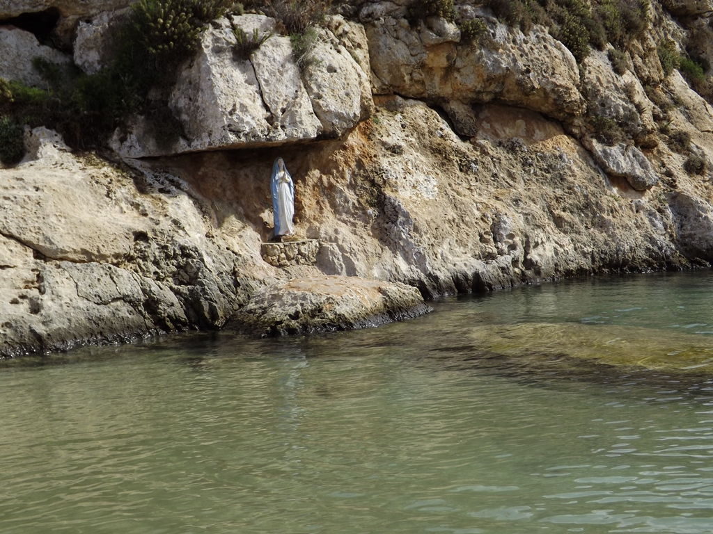 La cala prende questo nome dal Santuario della Madonna di Porto Salvo, ubicato nella parte superiore dell’insenatura e circondato da un bel giardino fiorito e da alcune grotte, utilizzate in passato come rifugio di naufraghi e colonizzatori. Questa chiesetta è dedicata alla Madonna come protettrice della gente di mare e ha origini incerte ma piuttosto antiche, si parla anche del 1200. Durante la seconda guerra mondiale è stata bombardata e semidistrutta ma è stata ricostruita con i generosi contributi della popolazione locale che tiene molto a questo luogo. Inoltre sul lato sinistro della cala, pochi centimetri sopra il livello dell’acqua, c’è un’incavatura nella roccia in cui è stata collocata una statuetta della Madonna.