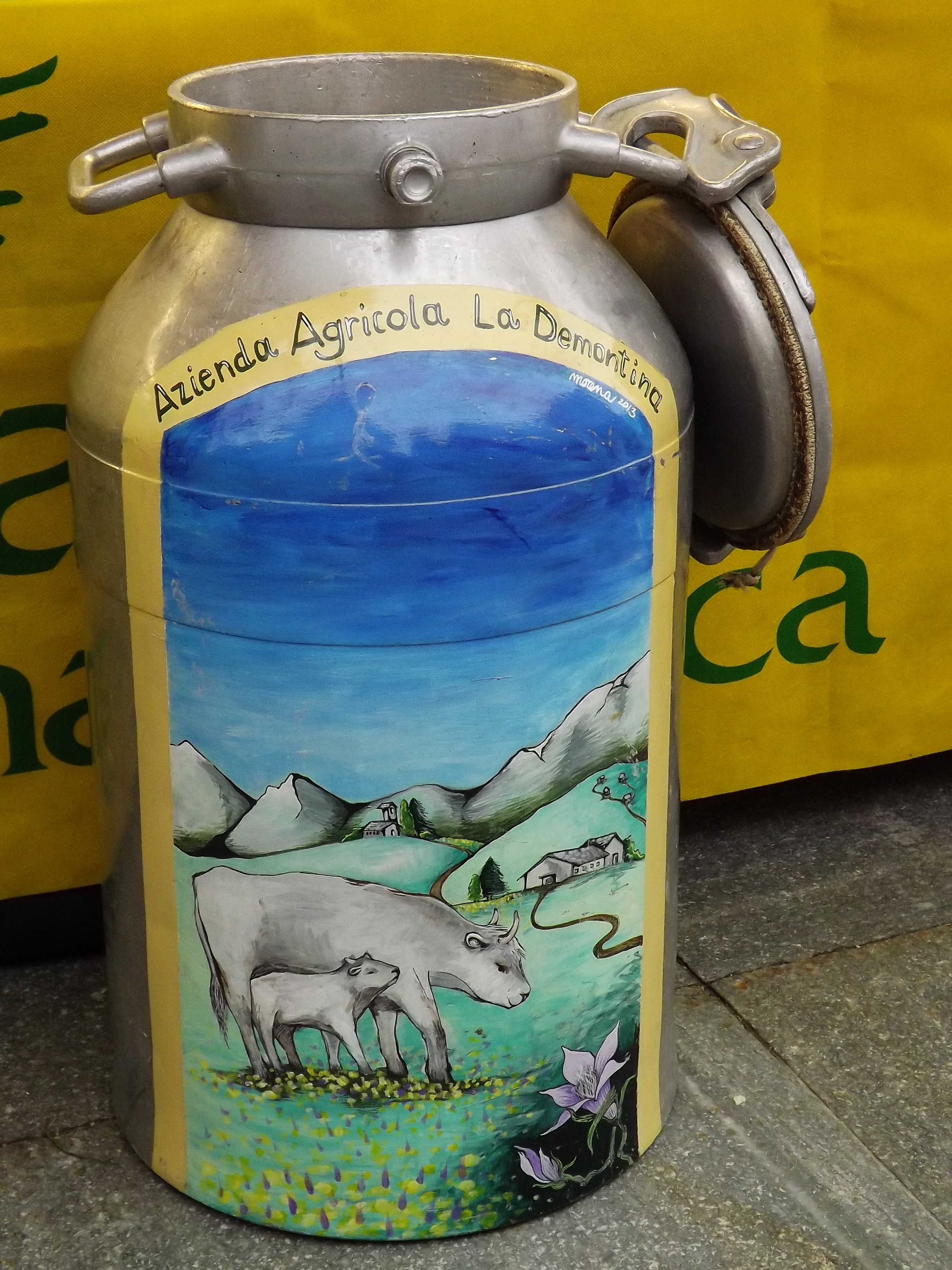 Damigiana di latte dipinta al mercato di Diano D'Alba
