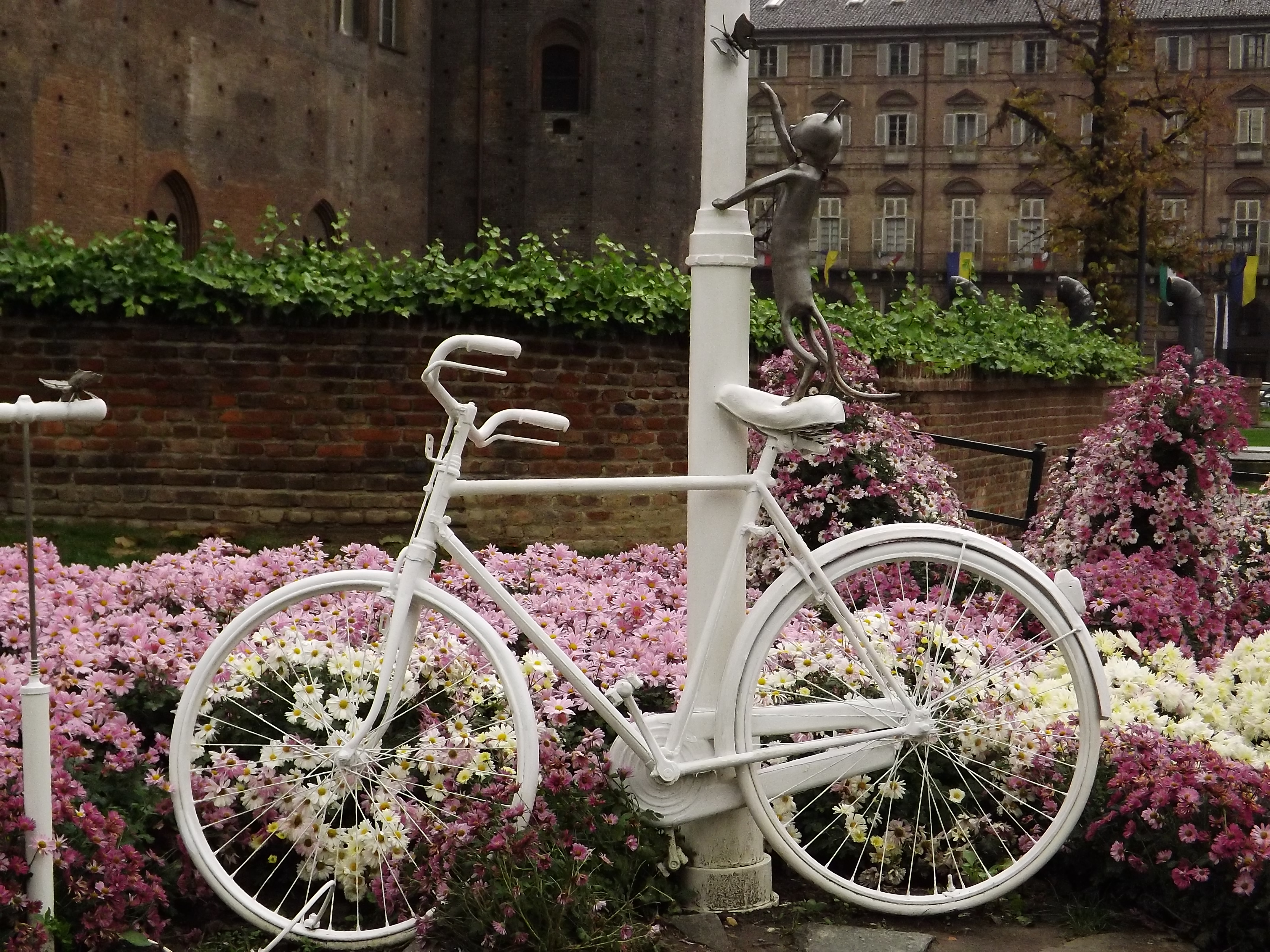 Un tocco di simpatica stravaganza è dato dalle sculture di Rudy, un giardiniere-artista che lavora a Torino e che raccoglie e riutilizza i tanti materiali di recupero che trova in giro, quali metalli, pezzi di legno, plastica, e realizza opere come farfalle, gatti, biciclette, innamorati che si baciano e che distribuisce per il centro della cittá creando questi bellissimi angoli artistici ed ecologici 😍.