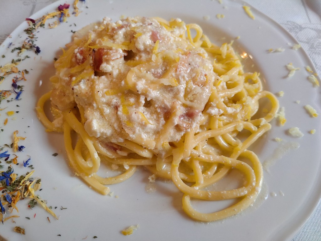 Dove e cosa mangiare: in Abruzzo la cucina è tutta ottima ed è davvero difficile trovare un posto in cui mangiare male. Per pranzare mi sono fermata tra Forca d’Acero e la Val Fondillo, precisamente al ristorante La Vecchia Locanda, sotto Opi. Qui la cucina è semplice e calda, un piatto di bruschette con i pomodori e l’olio d’oliva locale, le chitarrine (pasta all’uovo tipica abruzzese fatta in casa) con ricotta, pancetta e limone e gli immancabili arrosticini di pecora. Tutto da leccarsi i baffi.