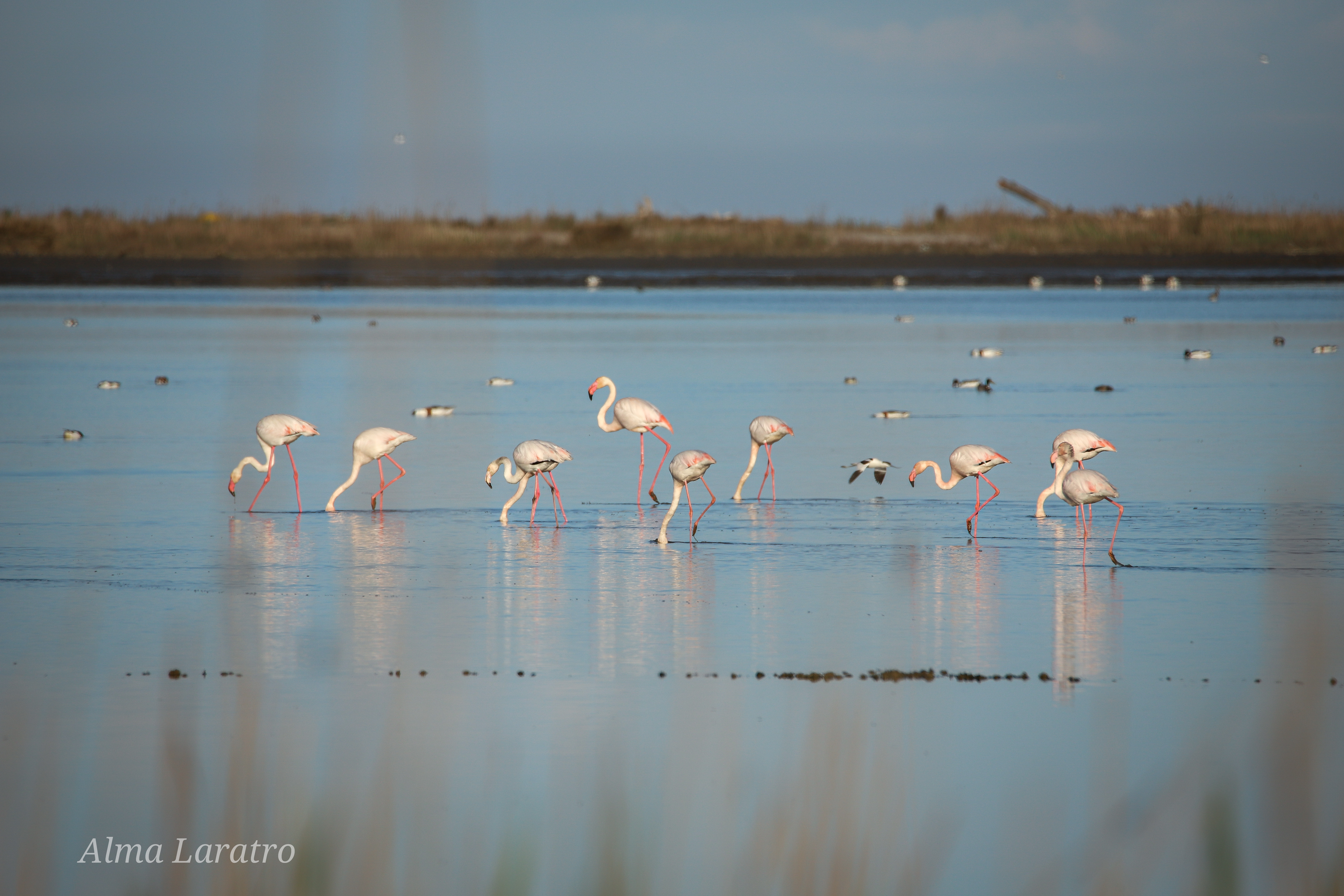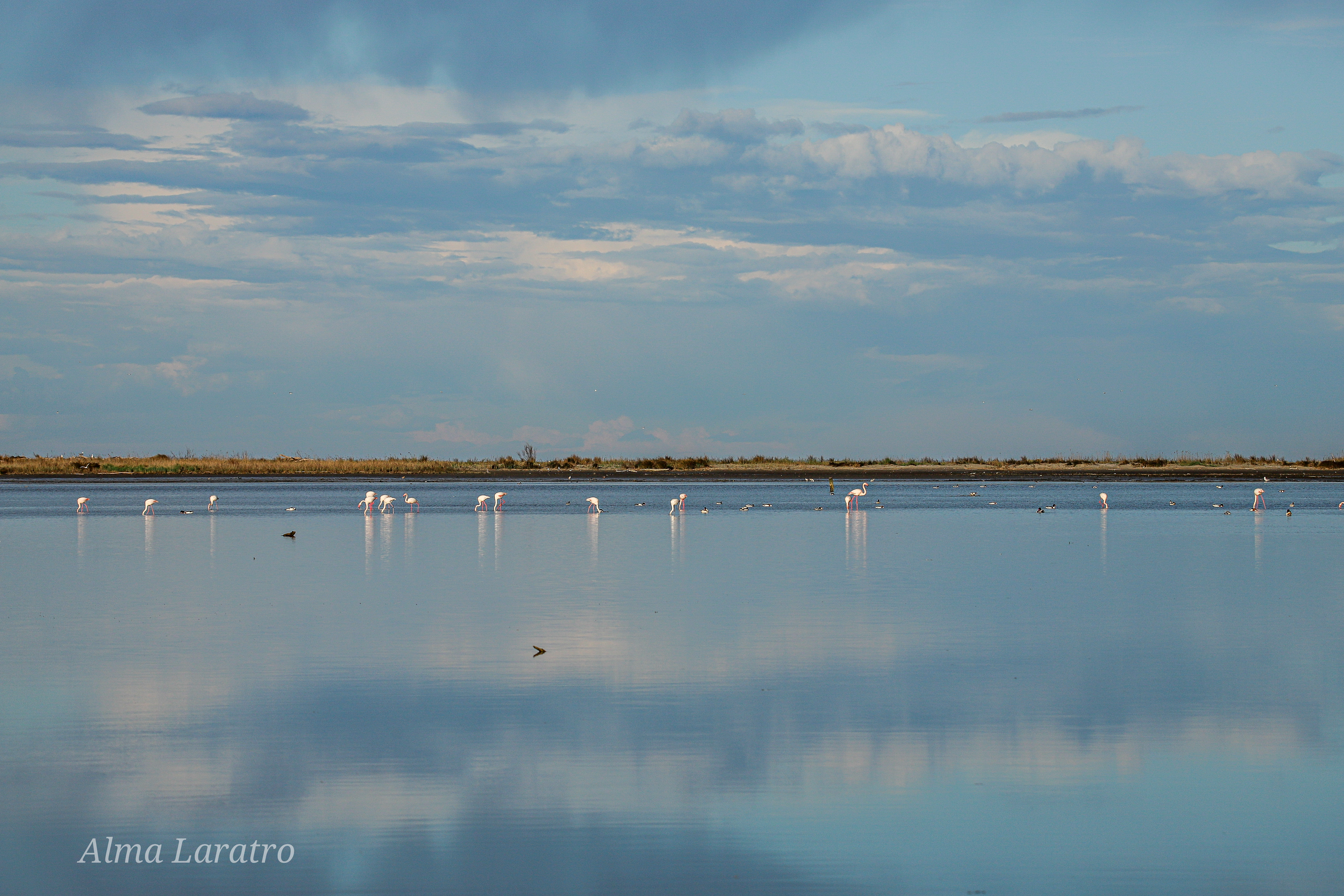 Fenicotteri, cavalieri d’Italia, fagiani, cigni, cormorani, aironi, ibis e tanti altri che non so ancora riconoscere in un’incredibile mescolanza di piume, colori, ali, zampette sottili, becchi lunghi e corti… per aria, in acqua e per terra, in ogni luogo a loro agio con la natura circostante e senza mai concedere troppa vicinanza ai fotografi impertinenti