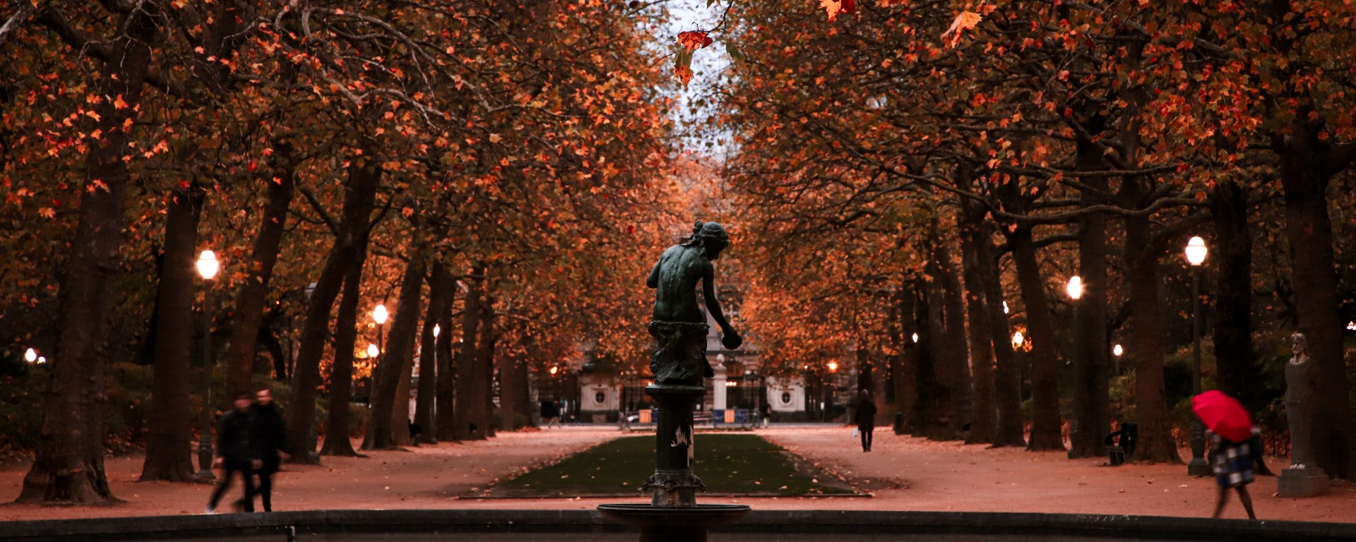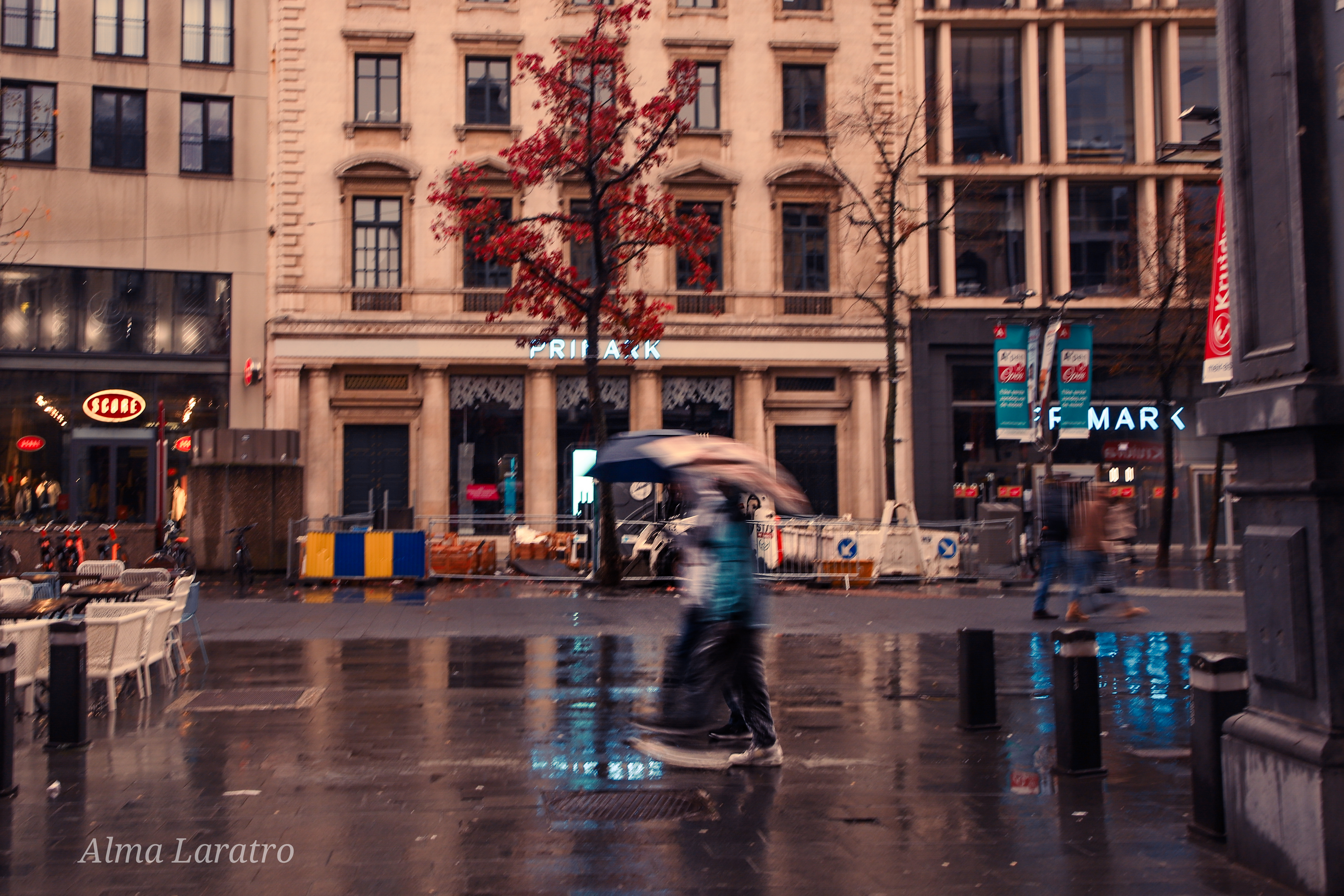 Bruxelles al tramonto ha un gran fascino. I palazzi di mattoncini color terra si colorano ancora più di rosso, mentre le luci dei parchi e delle strade illuminano di calore tutta la città. Se in aggiunta piove, i riflessi giocano con le luci in maniera irresistibile 💖
