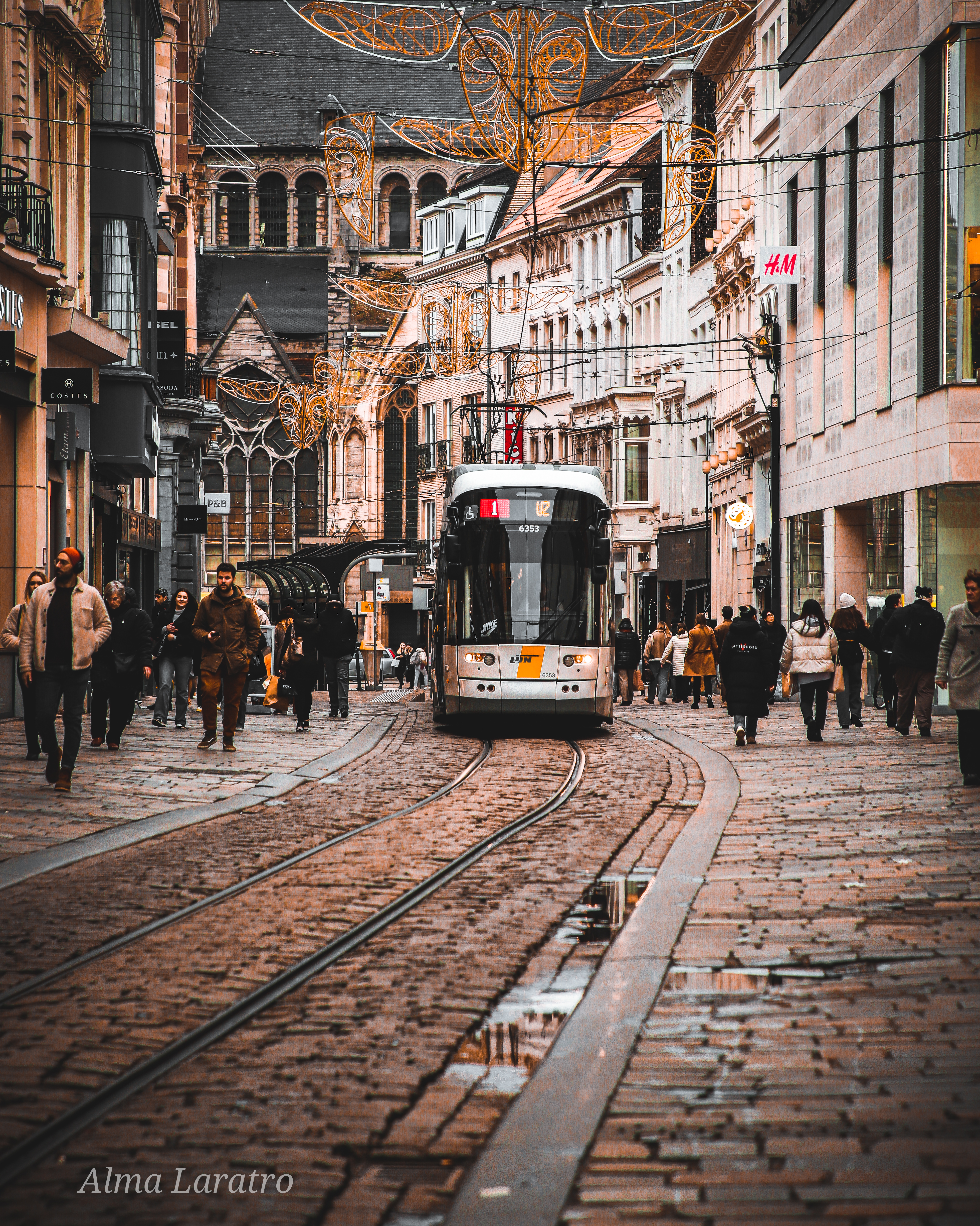 E poi la cattedrale di Nostra Signora, la più grande del Belgio, imponente, austera, gotica e bellissima… Il tunnel sotterraneo pedonale di Sant’Anna sotto il fiume Scheldt, raggiungibile con un’antica e rumorosa scala mobile ancora in legno… La tipica piazza centrale belga del mercato con accanto la dolcissima statua di Nello e Patrasche che celebra il legame tenero tra il cane e il suo umano bambino orfano… Il basolato e i sanpietrini lucidi e pieni di riflessi quando piove, che accentuano ancora di più l’anima gotica della città… E tanto altro da vedere, basta perdersi col naso all’insù girando per i vicoli della città.